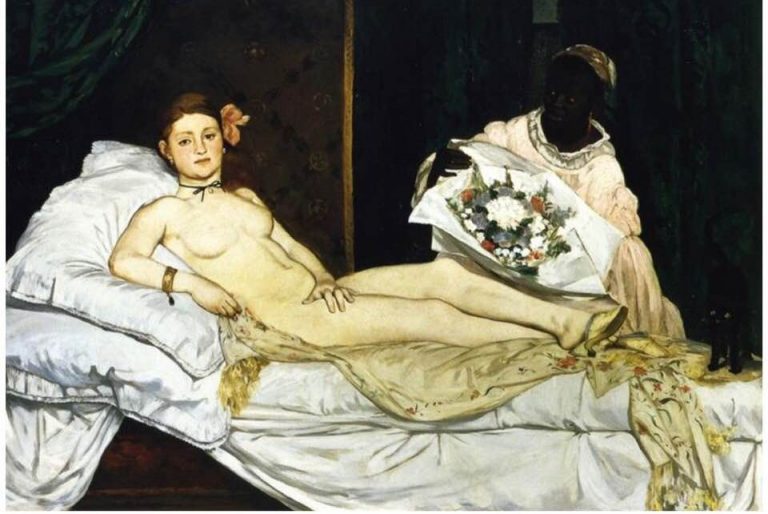 במרכז הדיון שלנו הבוקר – ציורו פורץ הדרך של אדוארד מאנה ,שנחשב למבשר האימפרסיוניזם , ומוצג למעלה. זהו הציור המפורסם : ״ אולימפיה ״ ( OLYMPIA ) שיצר מאנה בשנת 1863. הציור הוא בצבעי שמן על בד , גודלו: 131 על 190 ס״מ והוא מוצג באופן קבוע במיוזיאו ד׳אורסיי בפריז. הציור מתאר אשה שכובה בתנוחה קלאסית של אלה רומאית כשהיא מיישירה מבט אל הצופים. פרטים אחדים בציור מרמזים על כך שמדובר באשה העוסקת במקצוע העתיק בעולם. מאנה נותן בכך מסר ברור שלו שגם אשה כזו ראוייה לשמש כנושא ליצירה אמנותית וכי באמנות – הכל לגיטימי. ידה של אולימפיה מכסה את אזור ערוותה וכביכול, מסתירה אותו, אך למעשה דווקא מרתקת את תשומת לבם של הצופים בעיקר לשם. כאשר מאנה צייר את אולימפיה כנערה עירומה בתנוחת הסבה על מיטה, הוא מרמז במכוון על ציורו המפורסם של טיציאן – ״ ונוס מאורבינו ״ שמוצג כאן בצד שמאל, למטה. ובכך מתריס מאנה כלפי שמרנות האקדמיה לאמנות והמסורת הריאליסטית ששלטה בכיפה עד כה. בדומה לונוס של טיציאן שנוצרה בשנת 1538, אולימפיה של מאנה שכובה על ערימה של מצעים וכריות, חלק מהמיטה האדומה חשוף ומאחוריה – וילון. הדמיון המובהק ליצירתו של טיציאן מסמל כי מאנה מתייחס לעבר בהבנה אך מתריס כנגדו וקורא עליו – תגר. בציור של טיציאן – מאחורי ונוס מוצגות שתי משרתות שמכינות את הנדוניה שלה. בציור של מאנה – מוצגת משרתת שחורה שמביאה לאולימפיה זר של פרחים, כנראה- תשורה של לקוח מרוצה. לצדה של אולימפיה שוכב חתול שחור. מאנה בחר שלא לצייר- כלב , שהוא סמל של נאמנות ! החתול מייצג: ערמומיות,חוסר נאמנות ועצמאות. בציור הוא מספק מימד קונספטואלי נוסף לכך שאולימפיה, על אף היותה זונה, היא אשה עצמאית שאינה זקוקה לחסדיהם של גברים וגם כשהיא מפרנסת עצמה בעזרת גופה – יש לה חופש ועצמאות. יותר מכך – היא ערמומית דיה כדי להפיל גברים ברשתה – בקלות. אולימפיה מישירה מבט ויוצרת קשר עין עם הצופה ובכך מוכיחה כי אינה בושה במערומיה. לצדה מופיעים מספר אביזרי פיתוי : נעליים,צמידים,עגילים ופרח. סגנון הציור הוא עדיין ריאליסטי,1863 !!! אך שונה מהמקובל עד כה – מדובר לראשונה בסיפורה של אשה בשר ודם ולא במיתוס מפוסל שהפך לציור. כמו כן, בתיאור גופה של אולימפיה מאובחן קו קונטרסט מובהק שמבדיל בינה לבין הרקע. יותר מכך- ניתן לזהות קונטרסט ברור בין הרקע הכהה ובין המישור שבחזית הציור שעליו שוכבת אולימפיה ,והוא מבהיק בבהירותו. כשציורו של מאנה הוצג בסלון הגדול של פריז הוא עורר שערוריה ונטען כלפיו, בין היתר, כי הצגתה של ״ ונוס״ כזונה היא פורנוגרפיה ! העיסוק בזנות היה, כמובן,לא מכובד וכמעט ולא כיכב עד אז באמנות. טענה נוספת הושמעה כנגד מאנה על כך שהעז לנחל לעצמו יצירת מופת של מאסטר ענק ולהעתיק אותו לנושא בעל ערך ירוד ובכך פגע במטרותיה של האמנות ,לפי מסורת האקדמיה. הטענה ה ״ מקצועית ״ יותר כנגד מאנה היתה שהוא כביכול, צייר כושל שאינו יודע ליצור לפי חוקי הפרספקטיבה המקובלים . ברור לנו – לחלוטין – שאדוארד מאנה שהיה ידען מופלג לא רק של ההיסטוריה של האמנות אלא גם של כל כלליה המיושנים של האקדמיה – ידע היטב לצייר : ״ נכון״ – אך בחר במכוון שלא לעשות זאת. מן הראוי לציין כי המודליסטית בה בחר מאנה לצורך היצירה הנהדרת הזו שלו היתה : ויקטורין מאורנט ( VICTORINE MEURENT ) שהיתה בעצמה ציירת שבשנת 1876 הופיעו ציוריה בסלון של פריז במסגרת התחרות הרשמית. באותה שנה נידחו כל ציוריו של מאנה שנחשב אז לשנוא ודחוי על ידי האקדמיה . ציורו המוניומנטלי של טיציאן ,שהיווה עבור מאנה – דגם ל ״ אולימפיה ״ שלו, נוצר בשנת 1538 לאחר שהוזמן אצלו על ידי דוכס העיר אורבינו, גידובלדו דה ריברה, כדי לקשט תיבת עץ גדולה (CASSONE) שהחתן נהג לארוז בה את הנדוניה לכלתו. הציור עצמו שימש כנראה כ ״ מודל דידאקטי״ עבור תיבת הנדוניה של העלמה ג׳וליה וראנו, כלתו הצעירה מאוד של הדוכס. הציור הוא בצבעי שמן על בד וגודלו: 165 על 119 ס״מ. בציור הנהדר הזה שוכב,להבדיל, כלב – על המיטה – שמסמל תמי